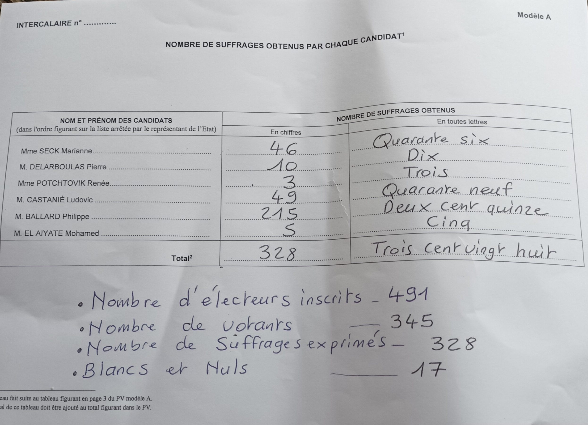 Vous êtes ici : Accueil > RÉSULTATS ÉLECTIONS LÉGISLATIVES DU 30 JUIN 2024