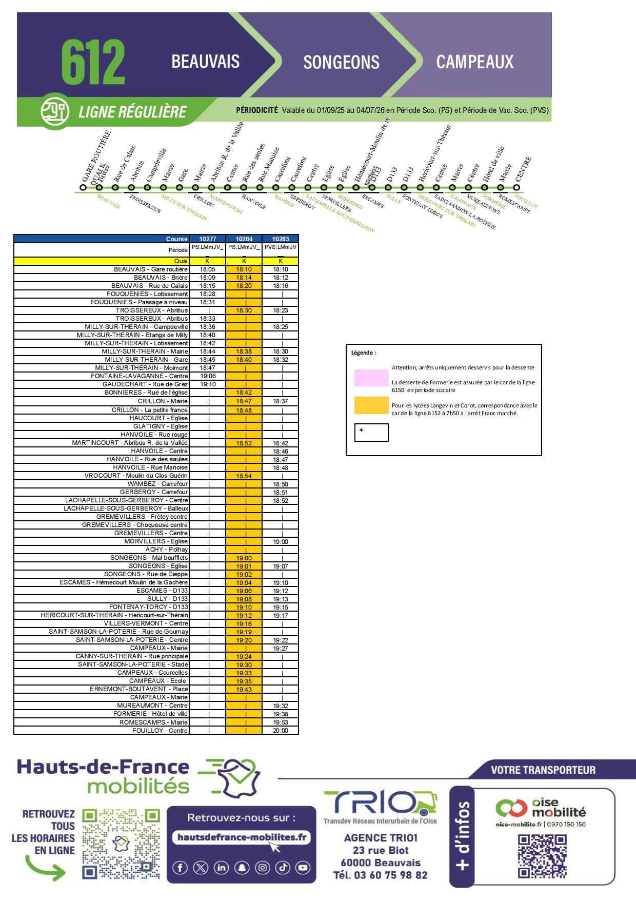 Les arrivées et les départs de Beauvais se font à la Gare Routière.